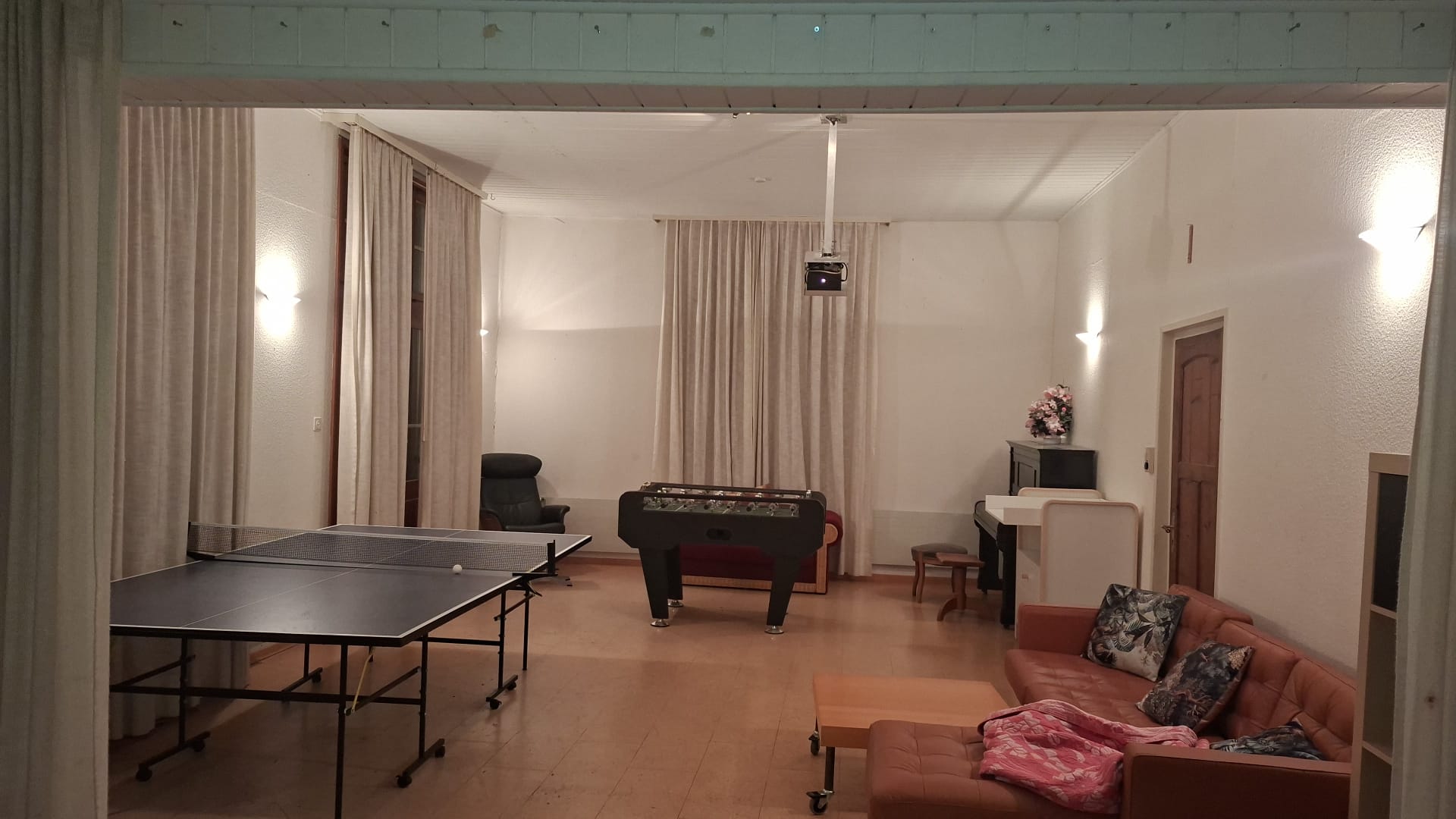 - 75m2 Festsaal mit Tischtennistisch, Tischfussballtisch, Beamer mit Playstation 5, Nintendo, Klavier